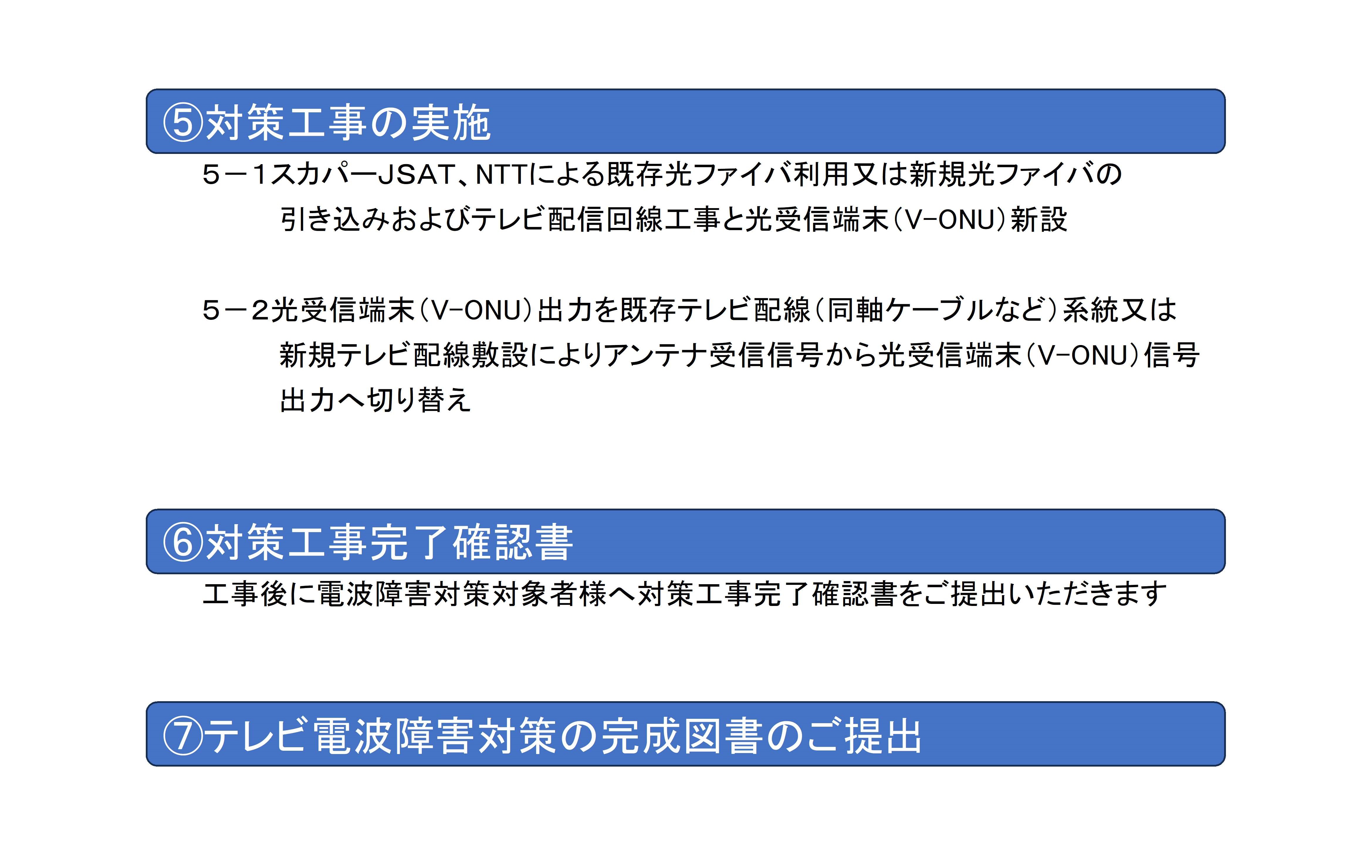 視聴環境変更点や契約書、覚書に記載されている内容をご理解いただき、テレビ電波障害対策のご提案に承諾をいただいてまいります。